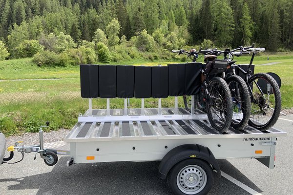 Mit unseren modernen Bike-Anhänger transportieren wir Sie mit Ihrem Bike oder