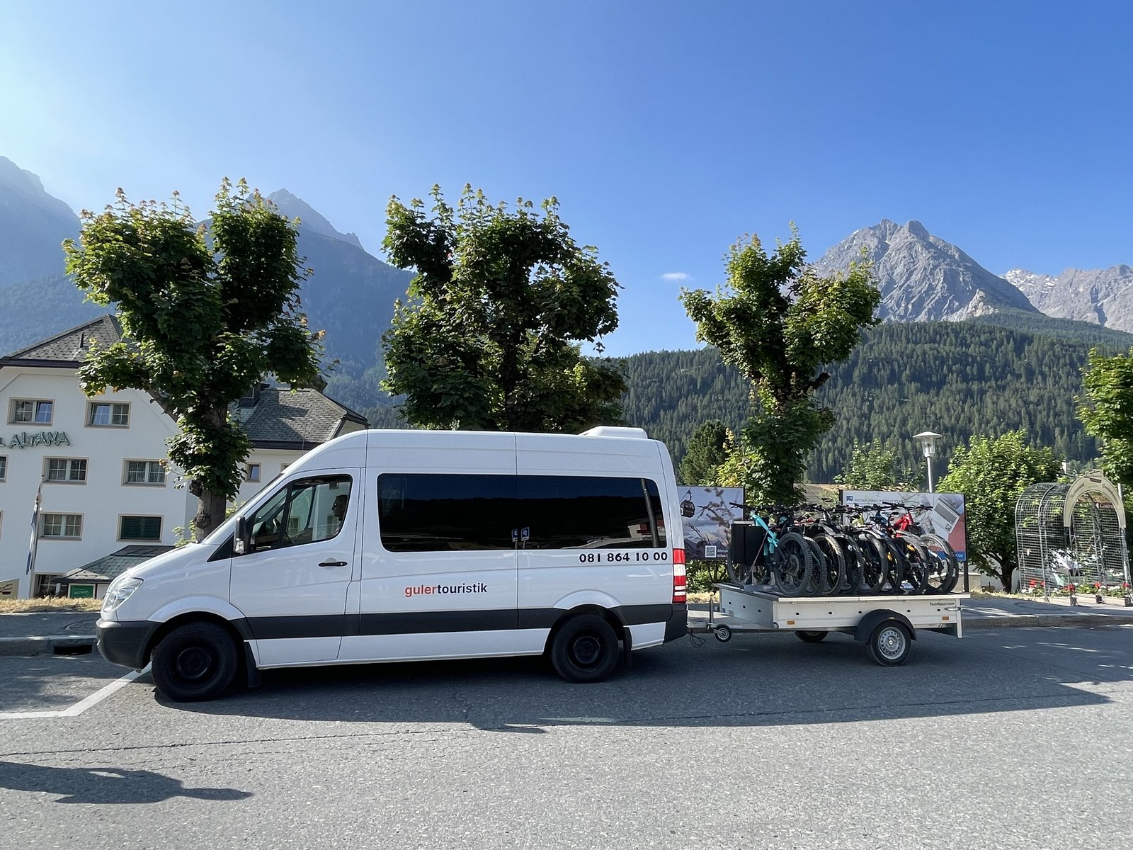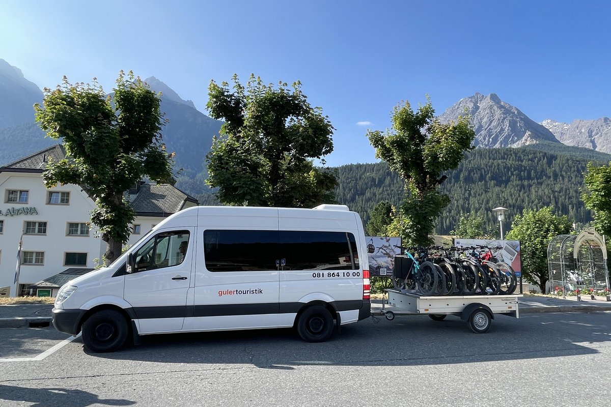 Personentransport mit E-Bike oder Bike von Scuol nach Samnaun. Datum, Abfahrtsort und Abfahrtszeit nach Verfügbarkeit frei wählbar.