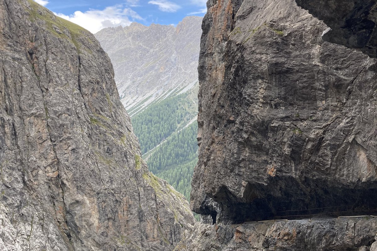 Der spektakuläre Felsenweg durch die Uina Schlucht im oberen Val d'Uina - ehemalige Schmugglerroute - ist der unumstrittene Höhepunkt einer einmaligen Bergwanderung durch das wildromantische Val d'Uina. Die Wanderroute führt Sie grenzüberschreitend vom Vinschgau ins Unterengadin oder umgekehrt. Mit unserem Shuttle erreichen Sie die Alp Uina Dadora mühelos und geniessen die aufregende Fahrt.
